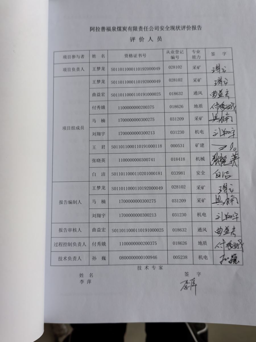 參與安全評(píng)價(jià)工作的注冊(cè)安全工程師 |