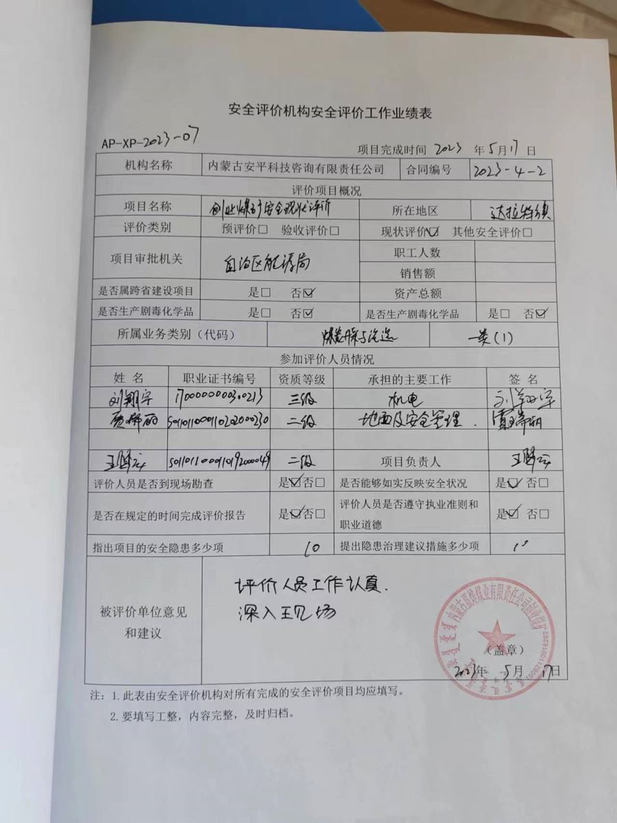 參與安全評(píng)價(jià)工作的注冊(cè)安全工程師 |