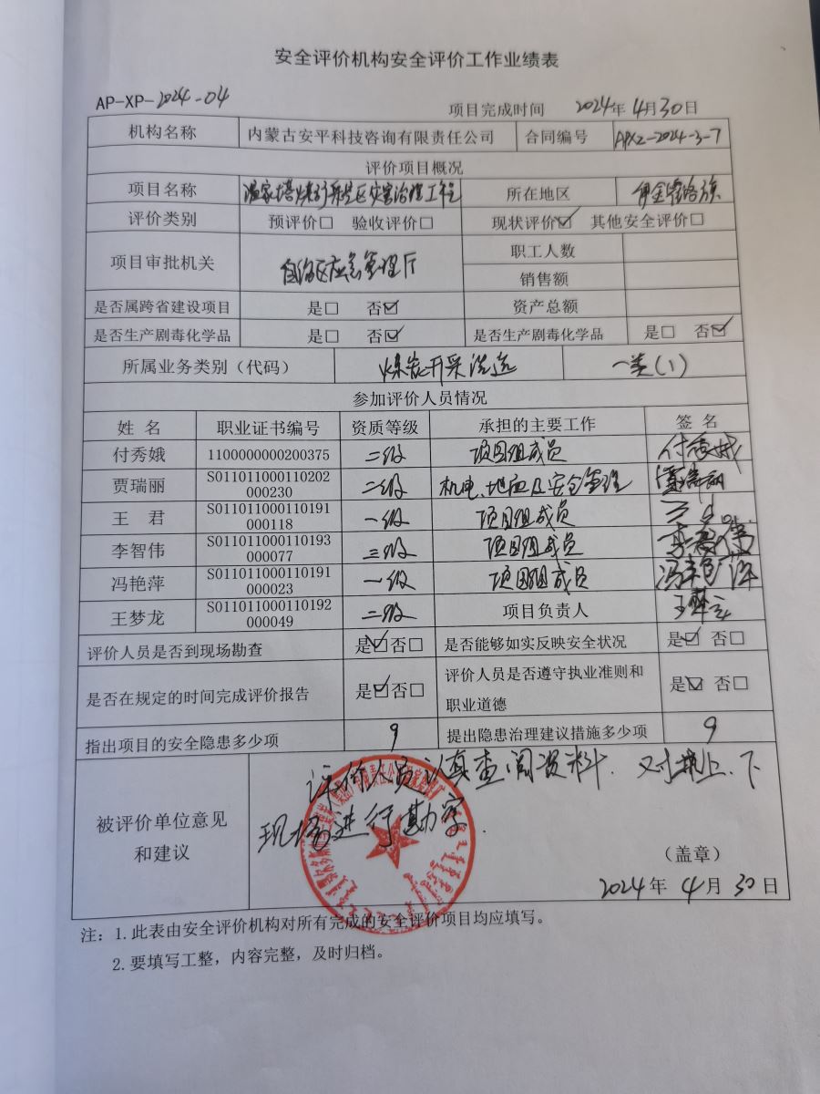 參與安全評(píng)價(jià)工作的注冊(cè)安全工程師 |