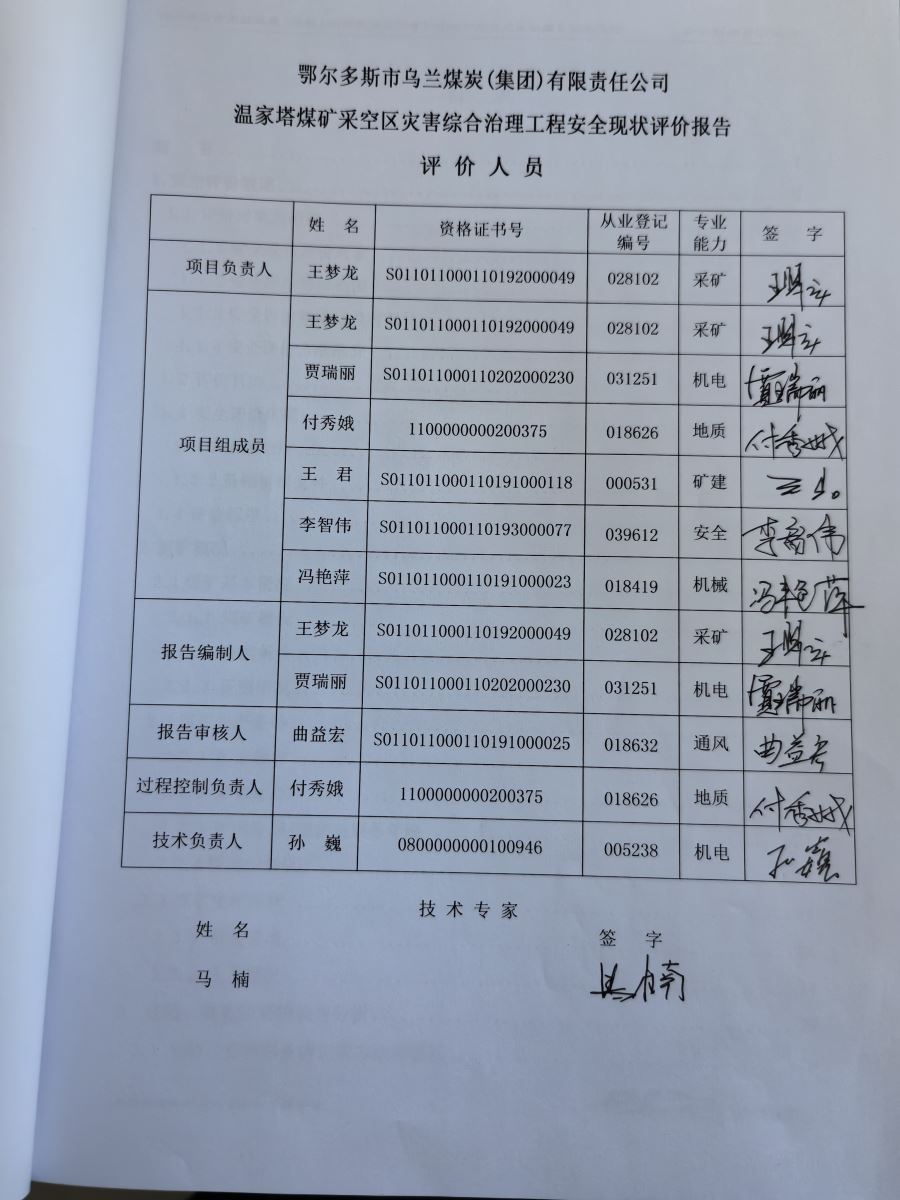 安全現(xiàn)狀評(píng)價(jià)對(duì)象:鄂爾多斯市烏蘭煤炭(集團(tuán))有限責(zé)任公司溫家塔煤礦采空區(qū)災(zāi)害綜合治理工程