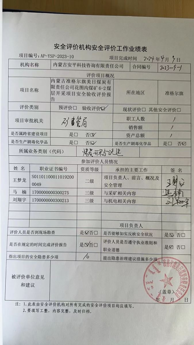 2021年6月29日包頭市安元安全生產(chǎn)技術(shù)服務(wù)有限公司提供的《準格爾旗美日煤炭有限責任公司煤塵爆炸性檢驗報告》(報告編號:BTAY-MGYFX-2021-0004),檢驗結(jié)論:6-1煤層煤塵有爆炸性。