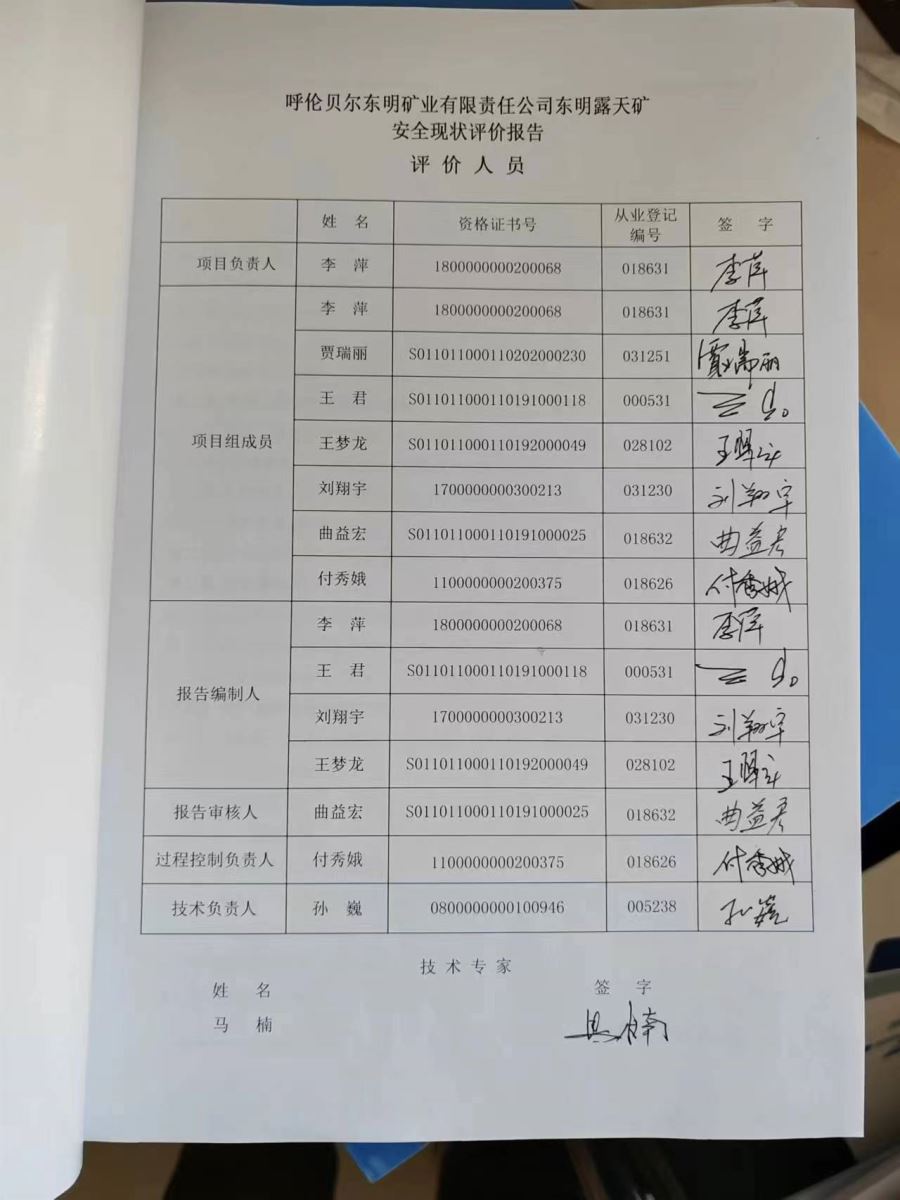 安全現(xiàn)狀評(píng)價(jià)對(duì)象:呼倫貝爾東明礦業(yè)有限責(zé)任公司東明露天礦