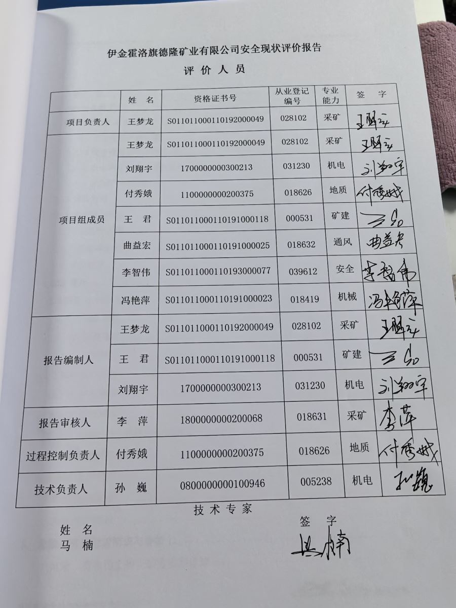 安全現(xiàn)狀評(píng)價(jià)對(duì)象:伊金霍洛旗德隆礦業(yè)有限公司